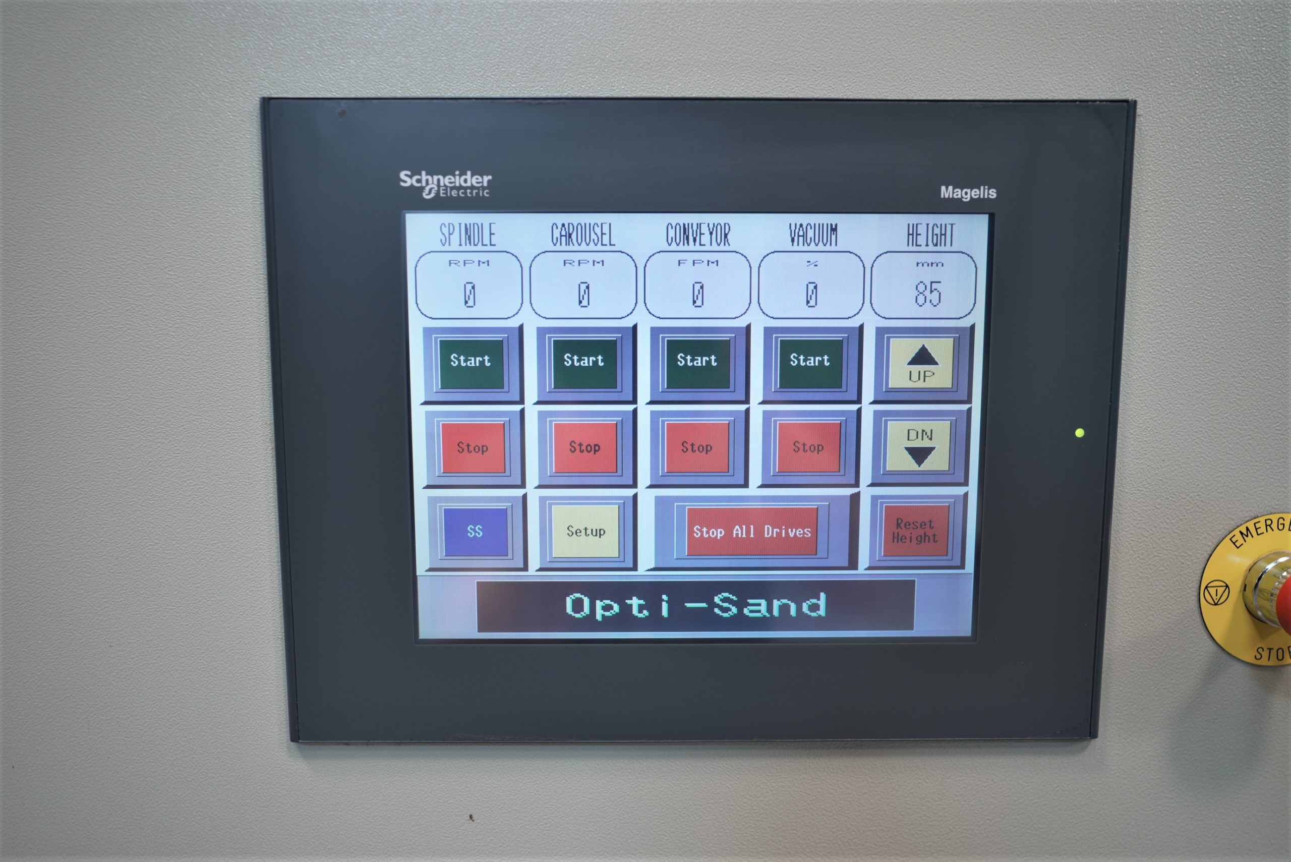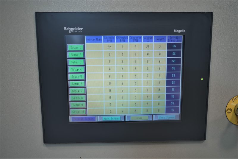 Spindle speeds, head rotation speeds, and conveyor speeds; all inverter controlled with infinite knob adjustment and digital readouts; work piece height is push button adjusted with digital readout