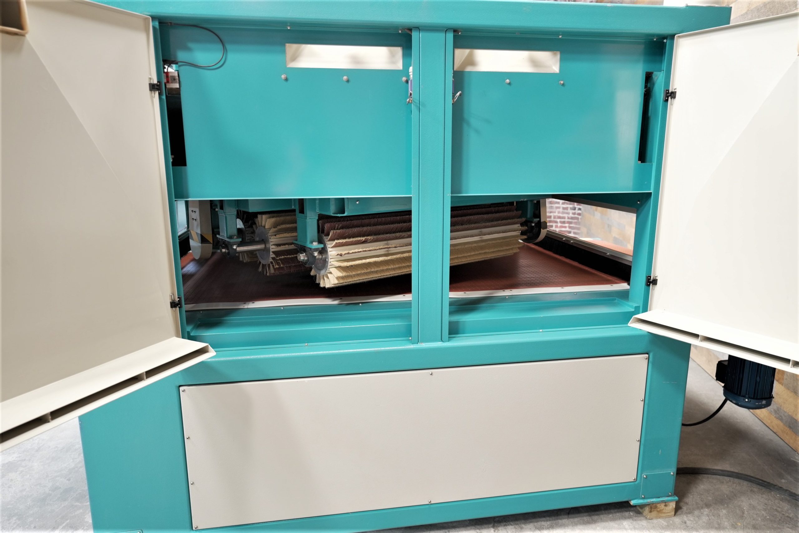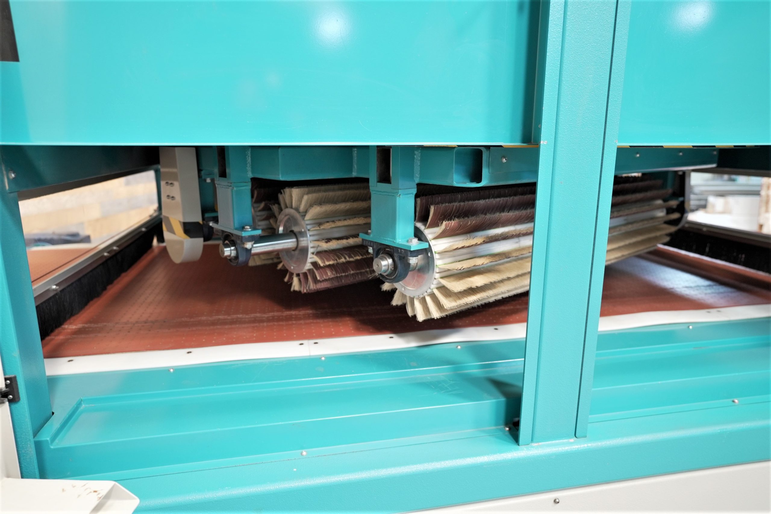 (2) center spindles 7″ dia. x 57″ long; 60 – 600 RPM Spindle speed with inverter control (reversible)
