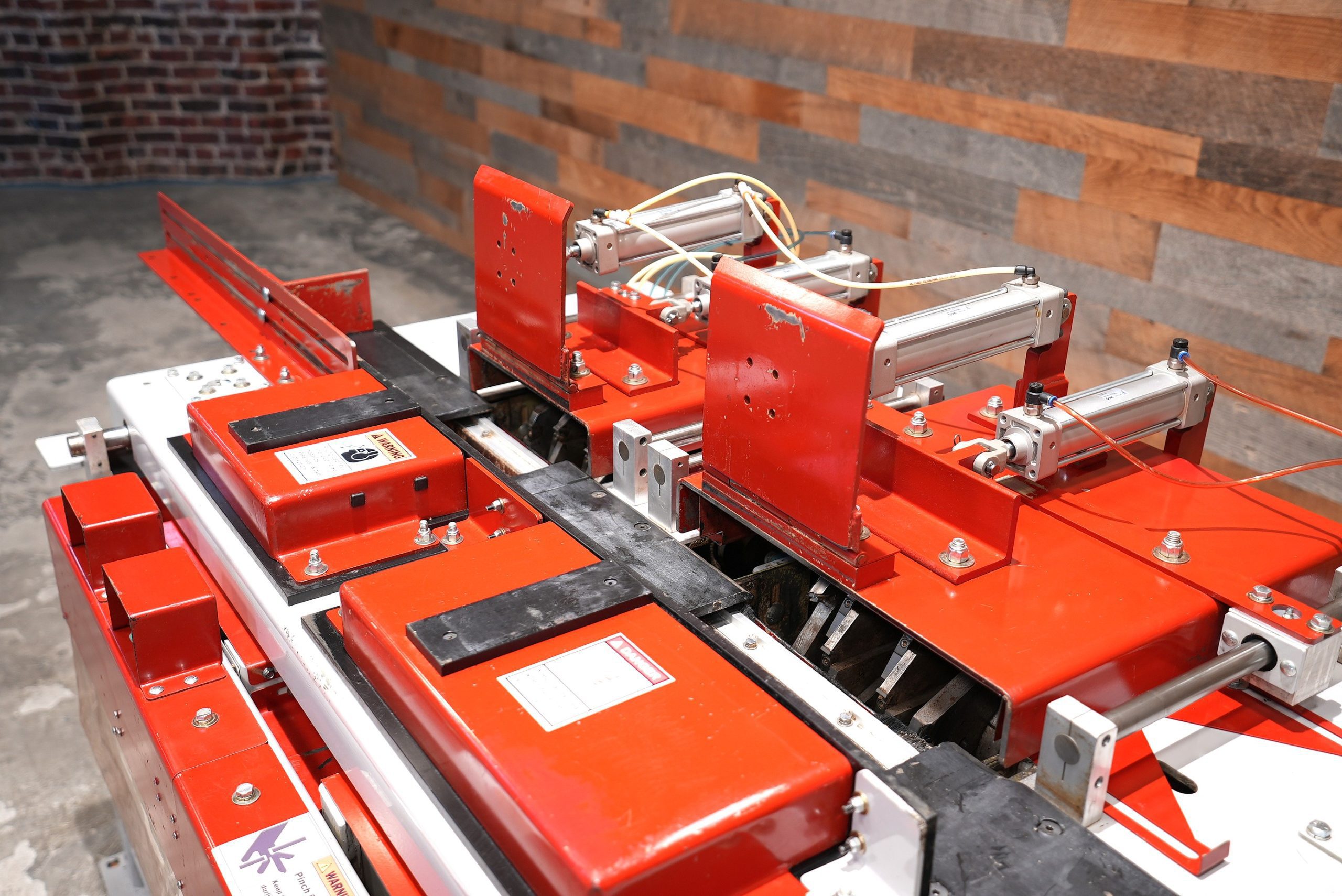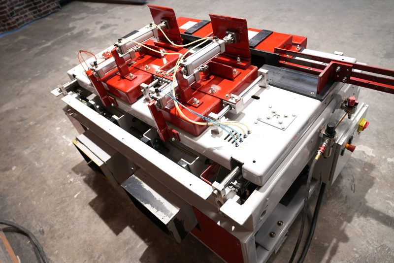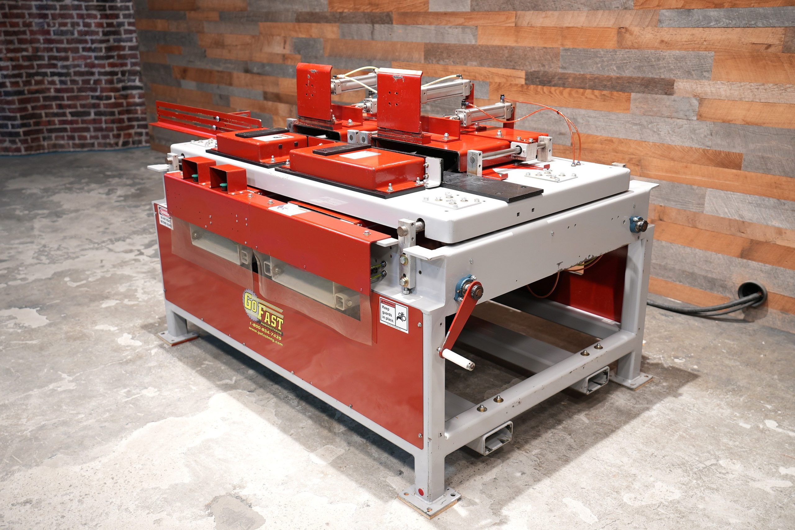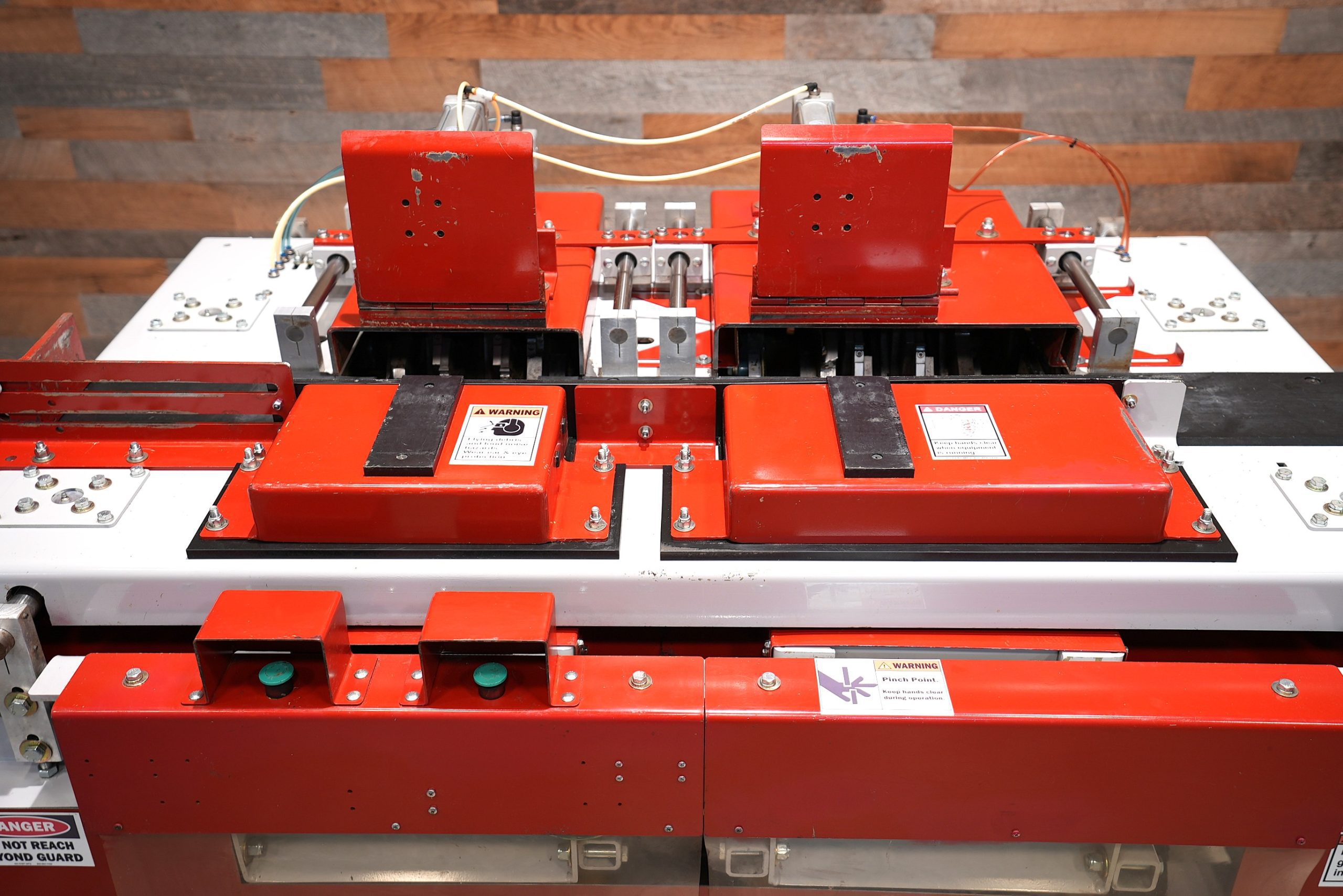 - Air System Includes: Dual Hand Safety Controls, Lockout Valve, Regulator, Pressure Relief, Reservoir, Table Speed Controllers, and Mechanical Valves