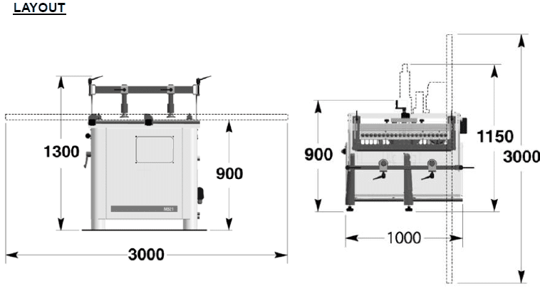 All controls are ergonomically positioned on the front of the machine. This includes the switch which sets the boring head at a 45° angle, allowing for an immediate changeover between operations. For perfect boring of large panels, the machine has a long 3000 mm fence with a scale and retractable stops. The fence is quickly mounted and removed easily.