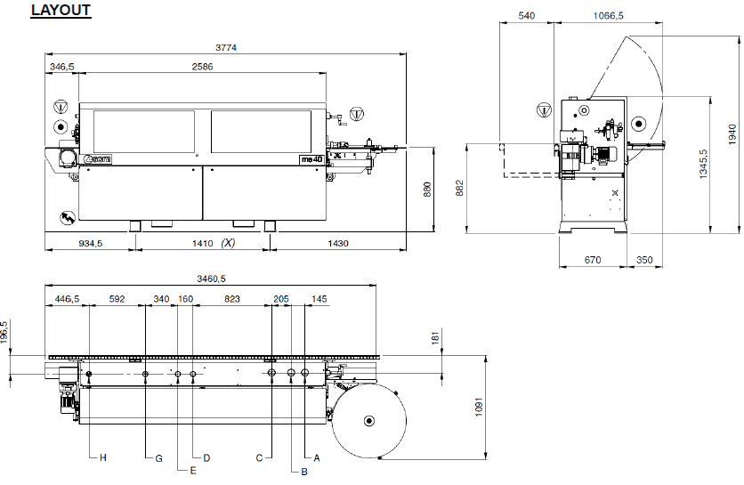| Work table dimensions | mm | 3465 x 710 |