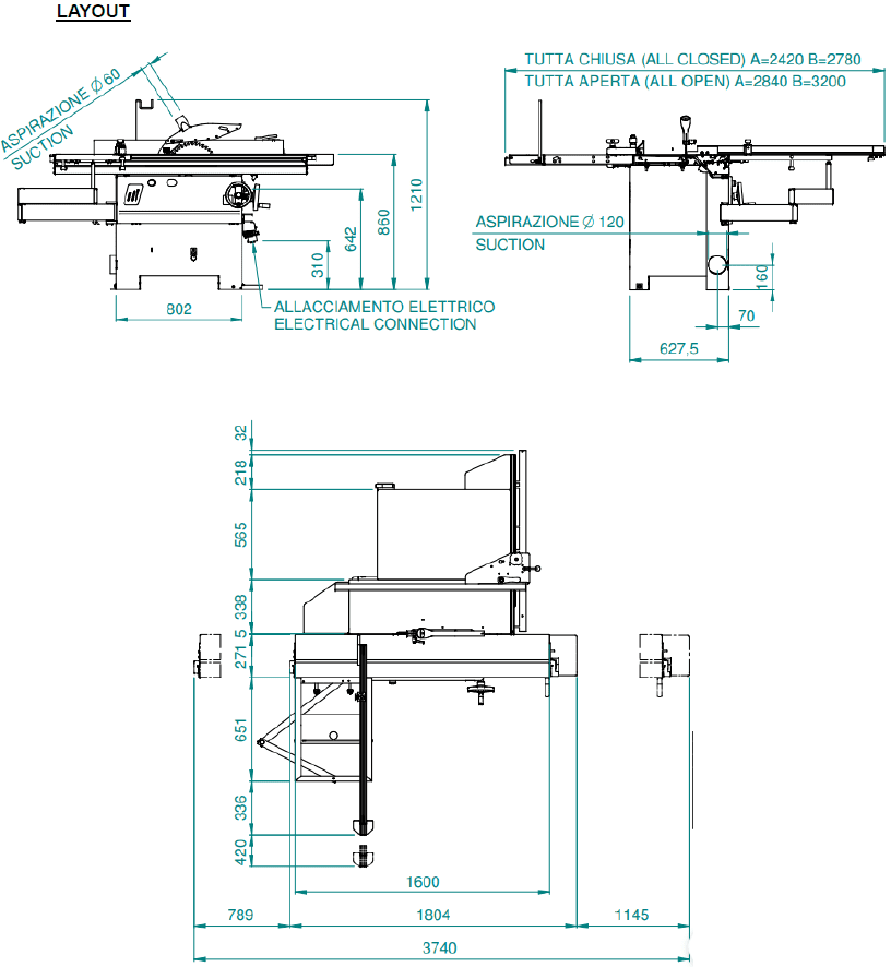 | Max. squaring stroke of sliding table saw | mm / ft | 1660 / 5.5 |