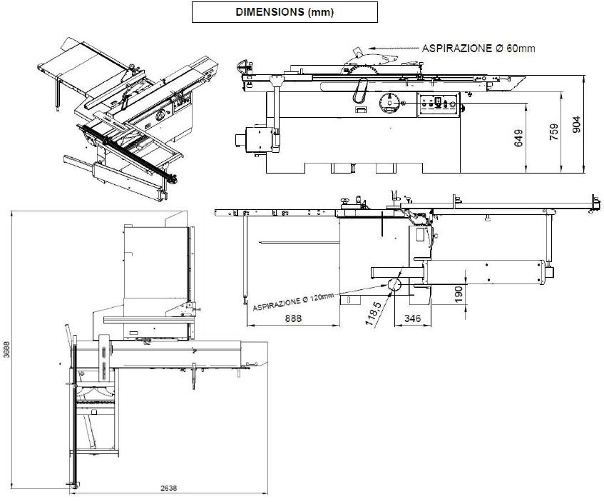 | Max. squaring stroke of sliding table saw | mm / ft | 2600 / 8.5 |