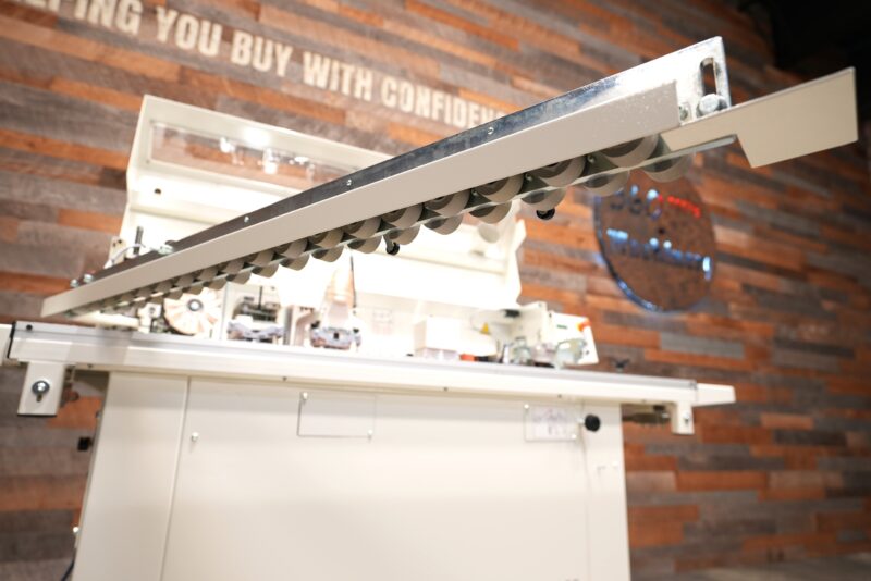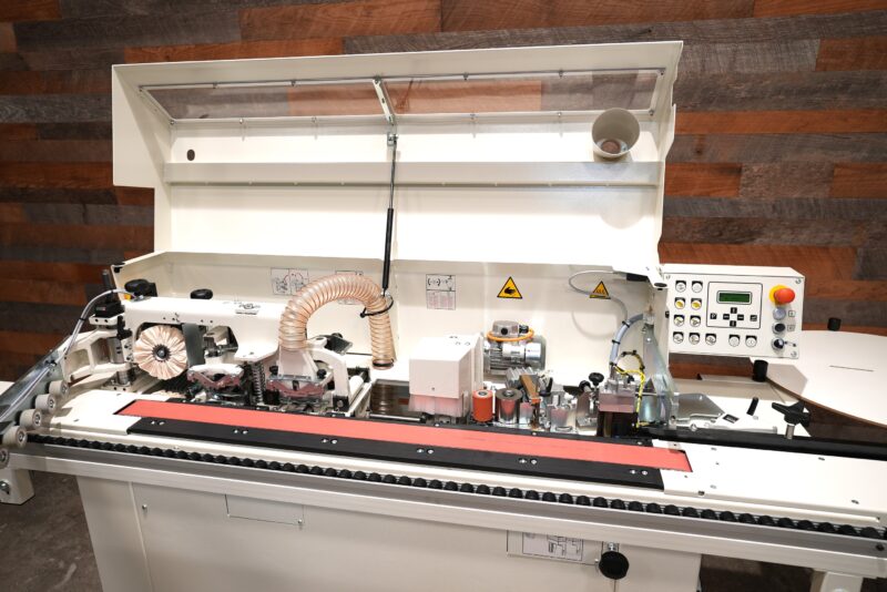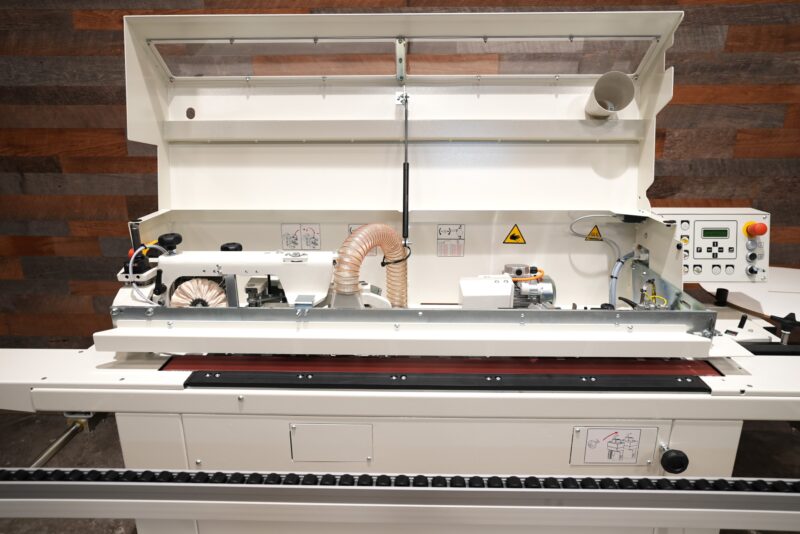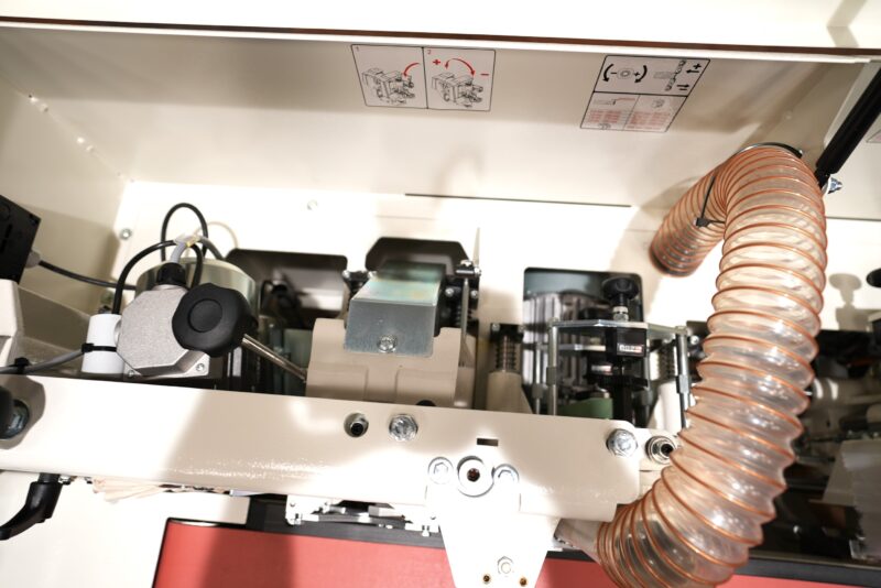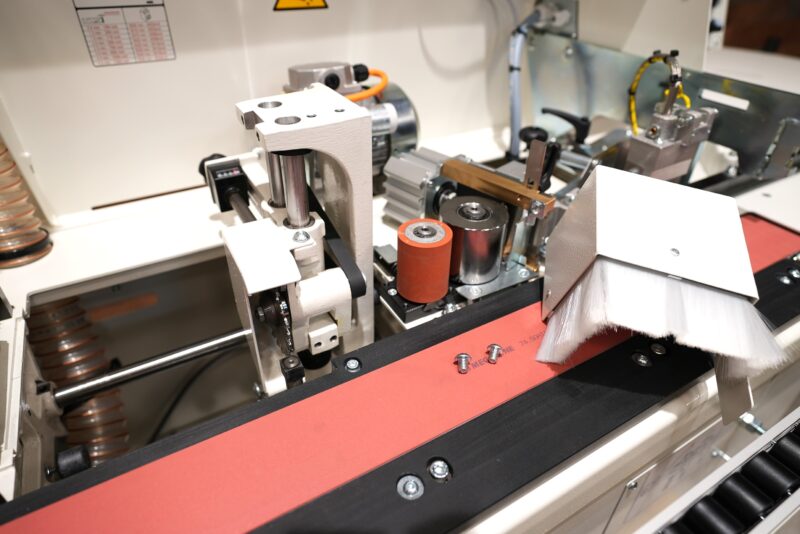 The very best finishing of the panel edge is also guaranteed by the panel conveying track (exclusive solution), which prevents the panel having the feed affected by the typical pulses generated by the pinion of a traditional feed track and ensures a smooth and linear panel movement.