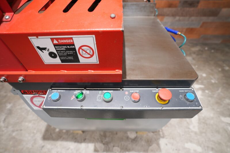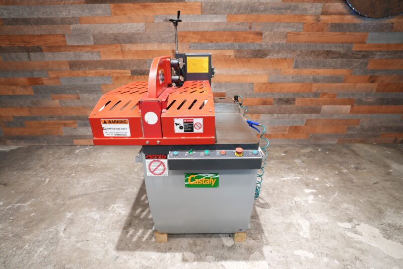 Very hard to find 2016 Castaly 24″ CS-24L Pneumatic Upcut Saw. 24″ blade capacity powered by a 10 hp motor with a 6-1/2″ X 12-1/2″, 6″ X 14″, 4″ X 16″, or 2″ X 17″ cutting envelope