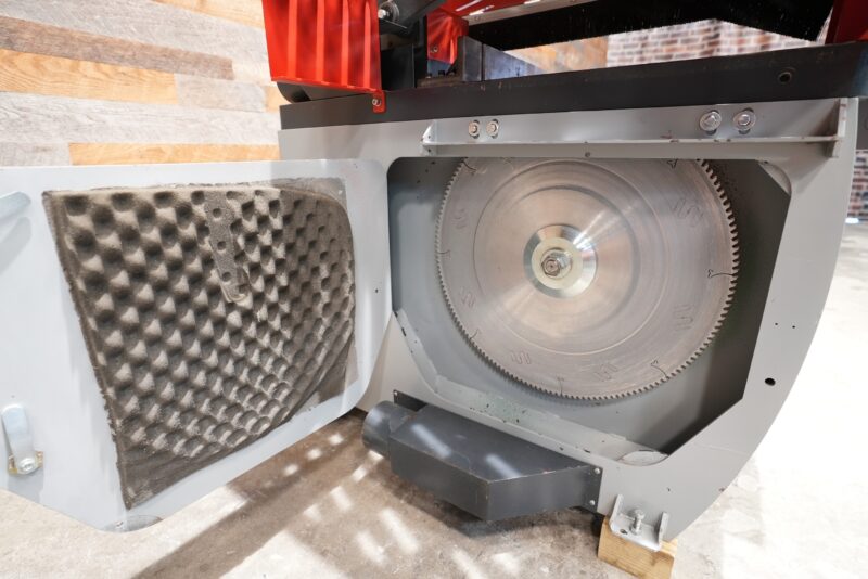 Saw blade rises from under the table and returns right after cutting for safety operation.