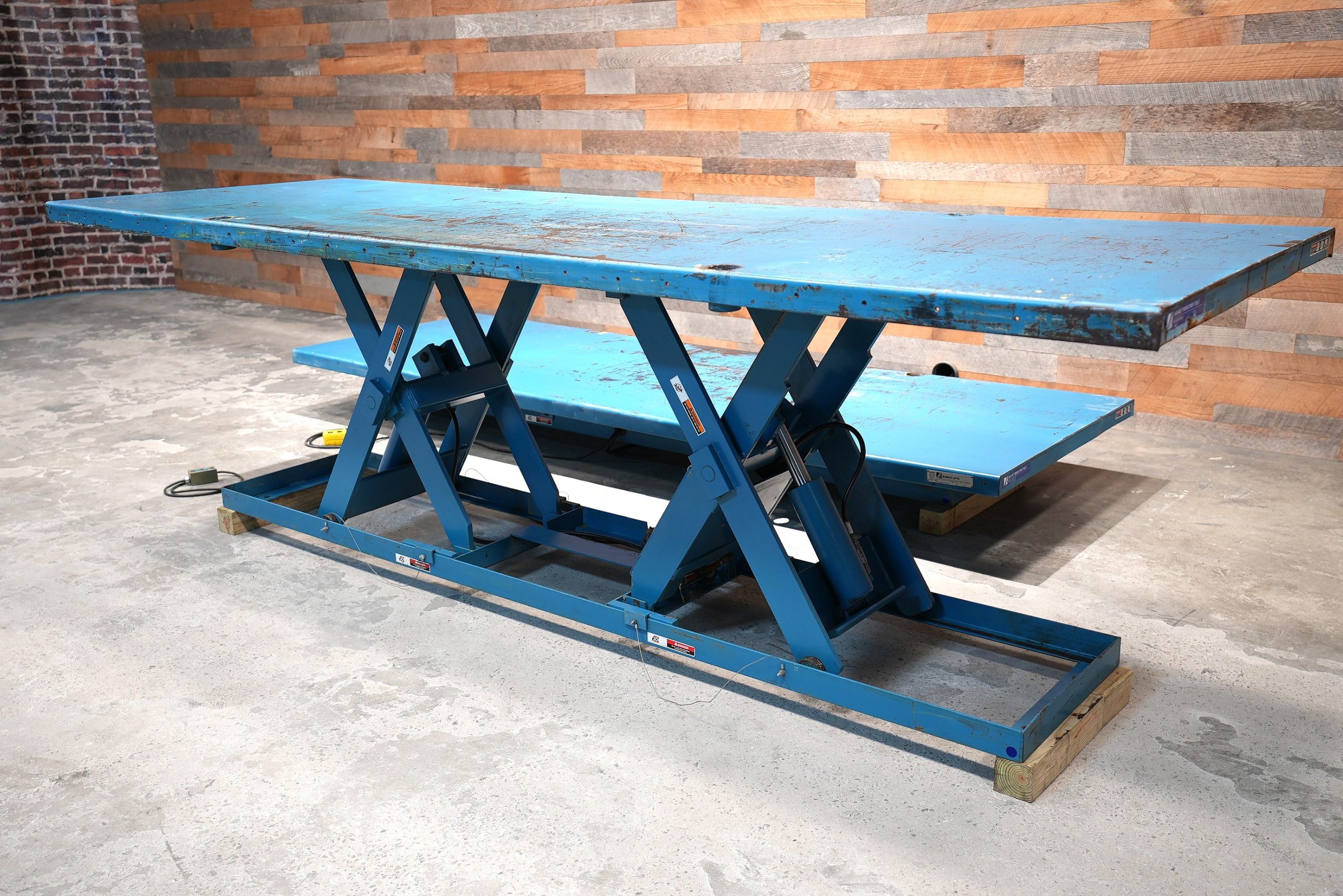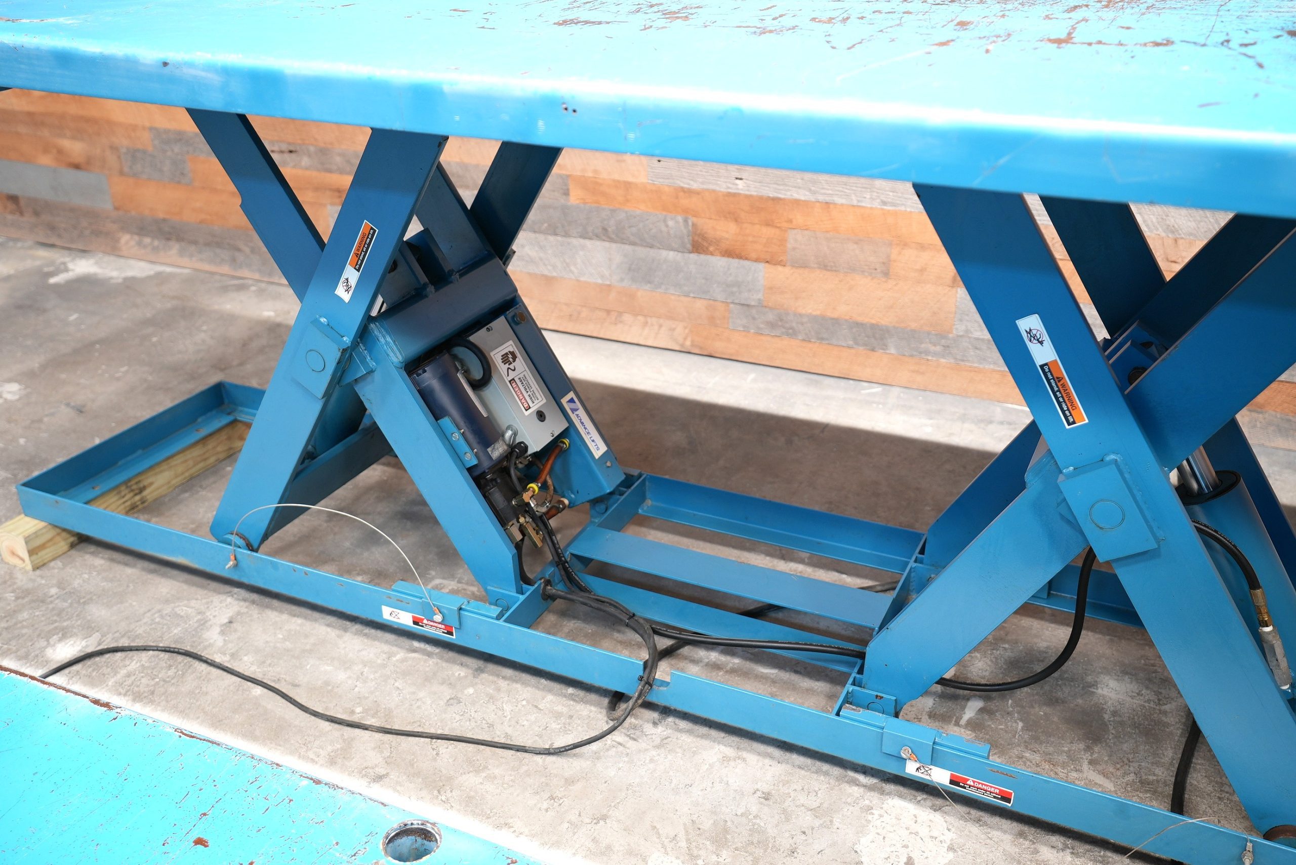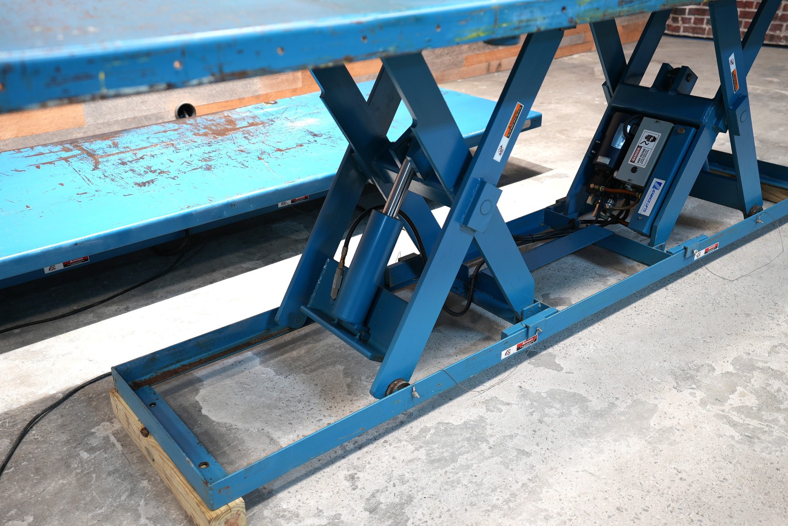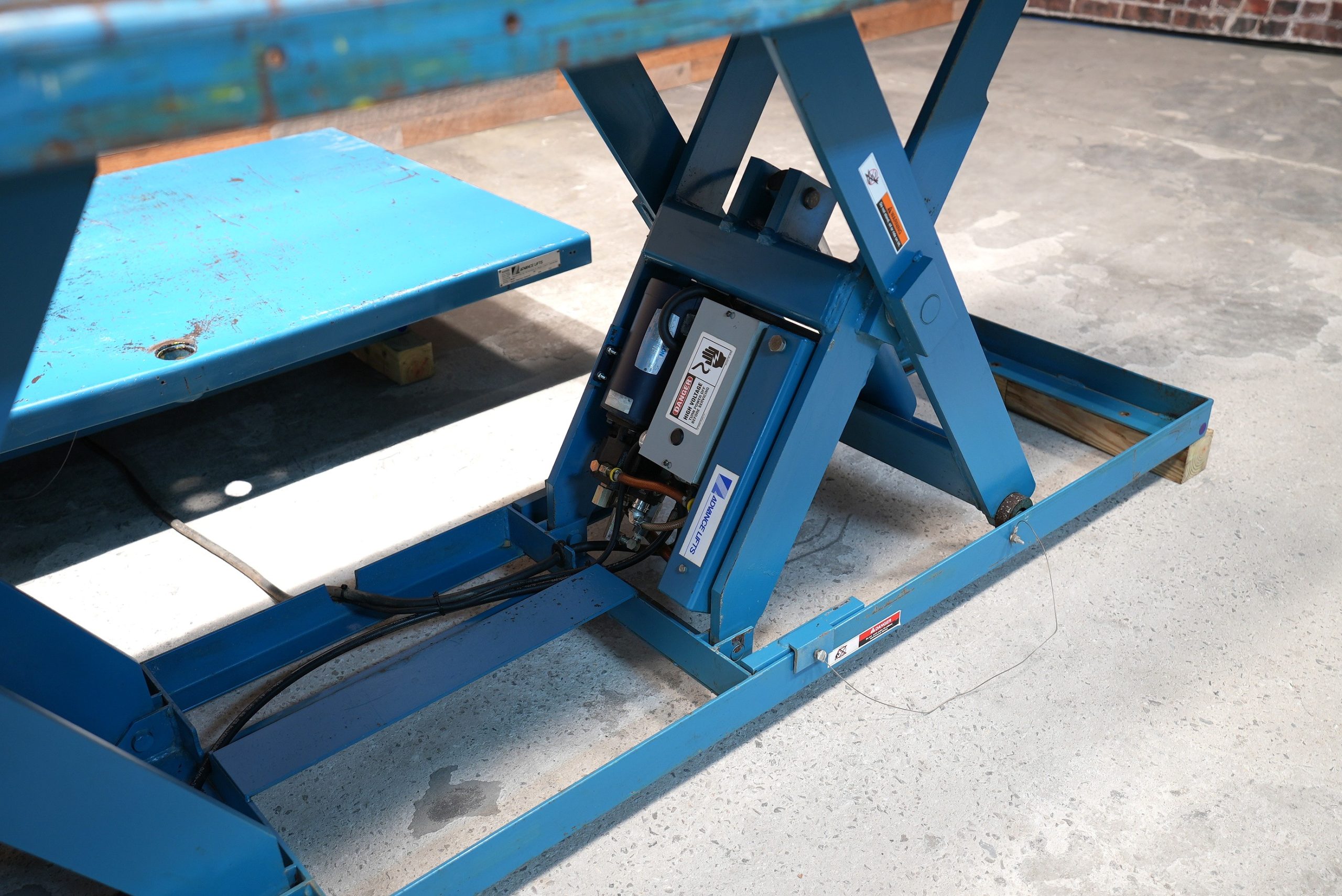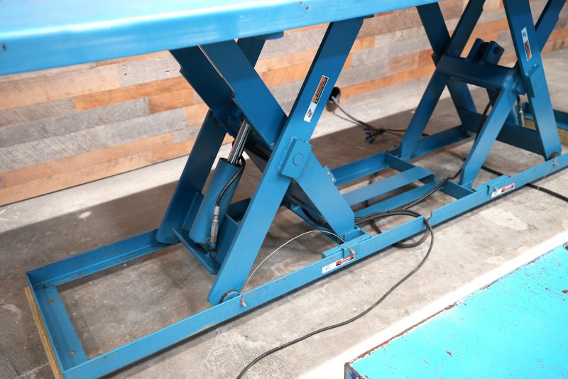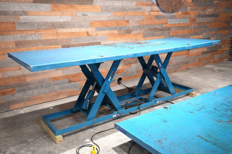 Advance Lifts, Inc model “PEDL-4036″ lift tables with a 4′ X 12′ top, a 10″ lowered height, and a 43-2” raised height with a 4,000 lb. capacity. Powered by a Leeson 2 hp motor that is 208-230/460V capable and currently wired for 230V/3-Phase Power. (2) Available – Priced per lift table