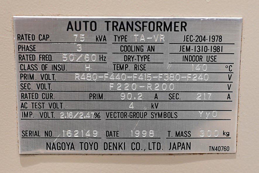 Crescent 12" Jointer $2,400.00Nagoya Denki 75 KVA 3-Phase Transformer 480V/220V/3-Phase