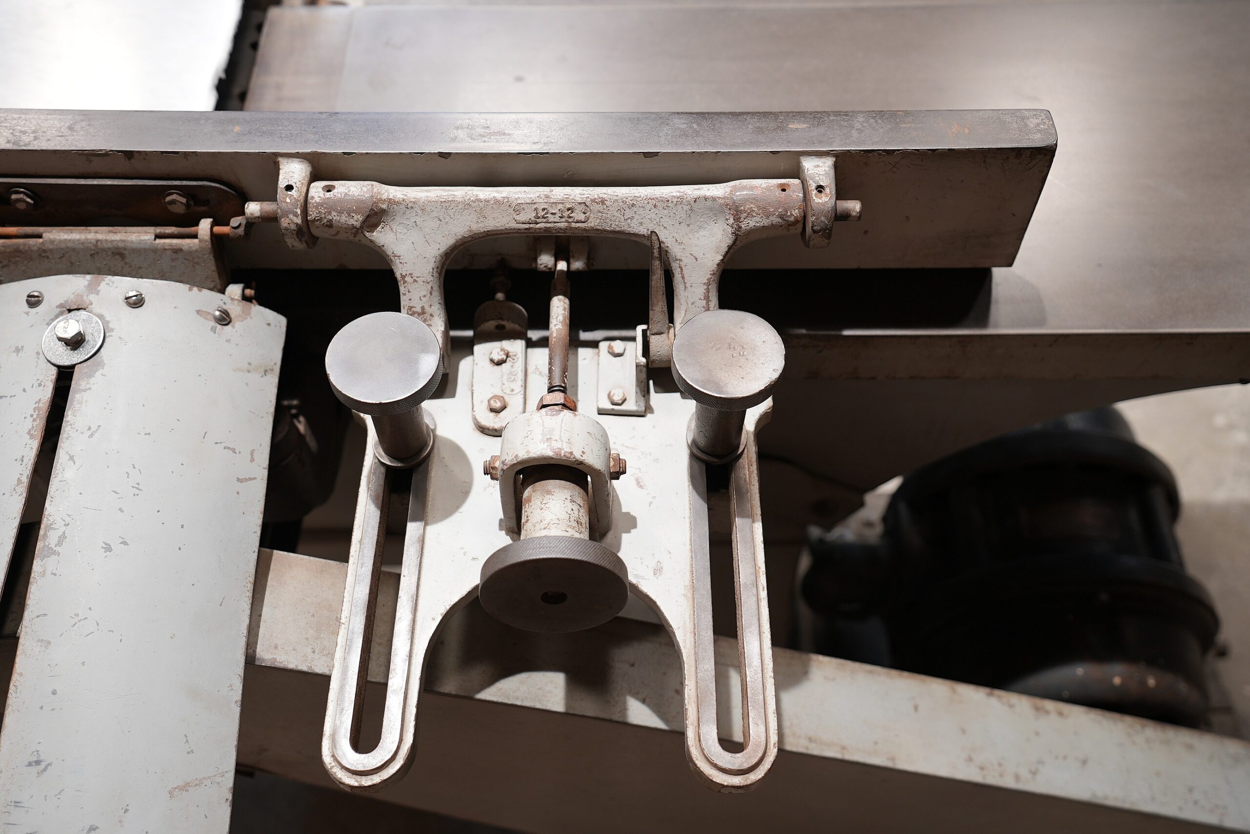 This is a pretty straight forward machine. It has a 12″ width capacity, (3) straight knife cutterhead, and is powered by a 5 hp 220/440V/3-Phase belt driven motor (1,735 RPM) currently wired for 220V/3-Phase operation. The tables are flat and parallel to one another.