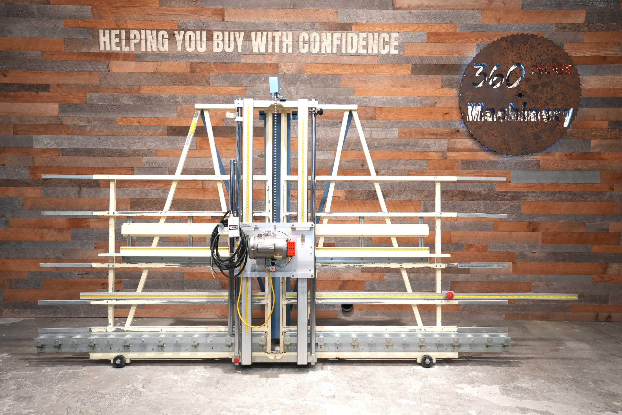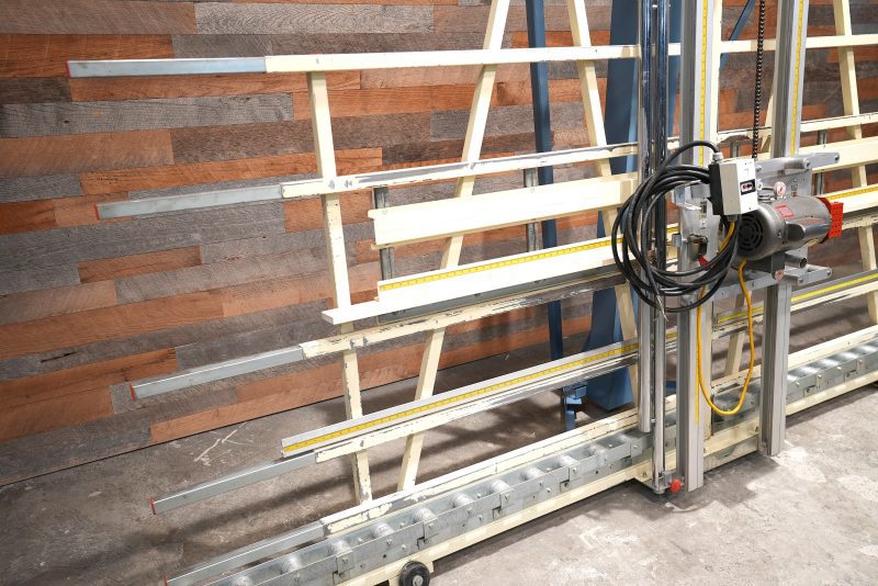 Continuous usage panel processing done the easy way. The 7400 panel saw features a 10′ frame. This one also has the frame extensions extending the rear frame to 12’9″.
