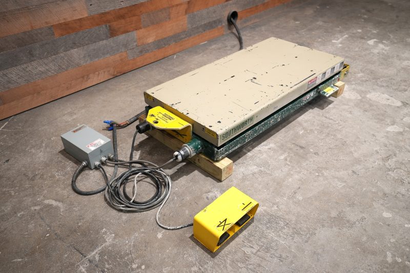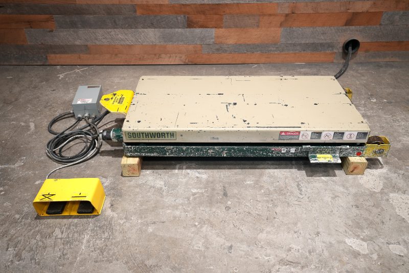 This is a pretty straight forward Southworth model “PLS 2.5 36″ lift table with a 24″ X 48″ top, a 7″ lowered height, and a 43” raised height with a 2,500 lb. capacity. Powered by a Baldor 1 hp motor that is 208-230/460V capable and currently wired for 460V/3-Phase Power.