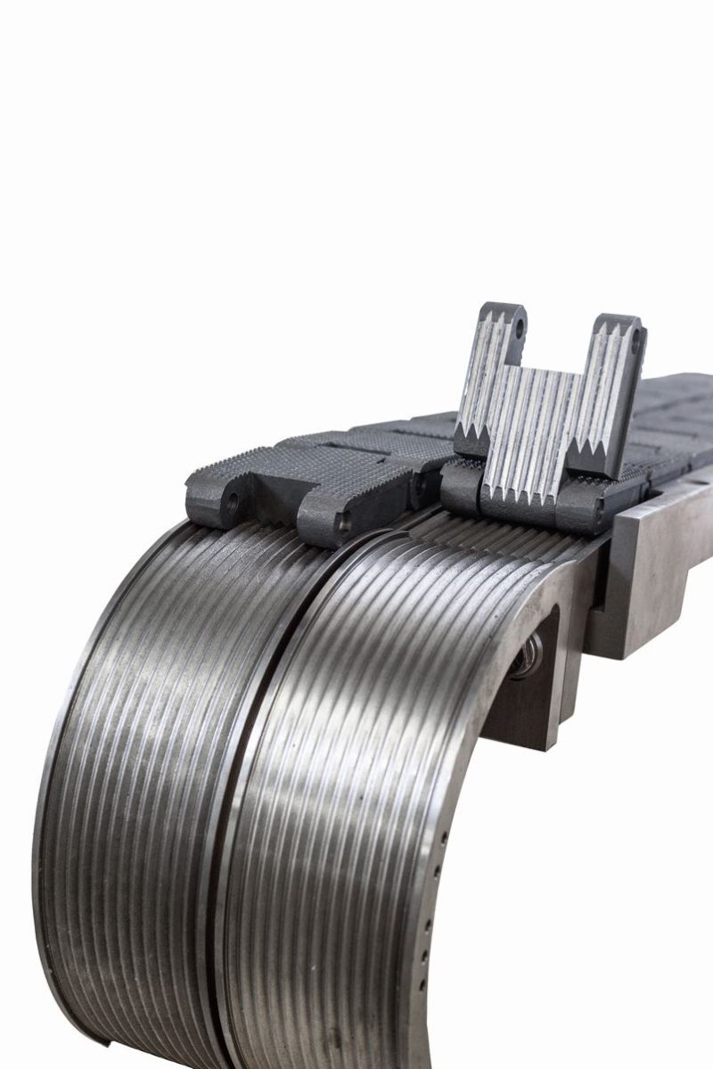 - Industrial fence with cam-lock quick release on rack and pinion glide.